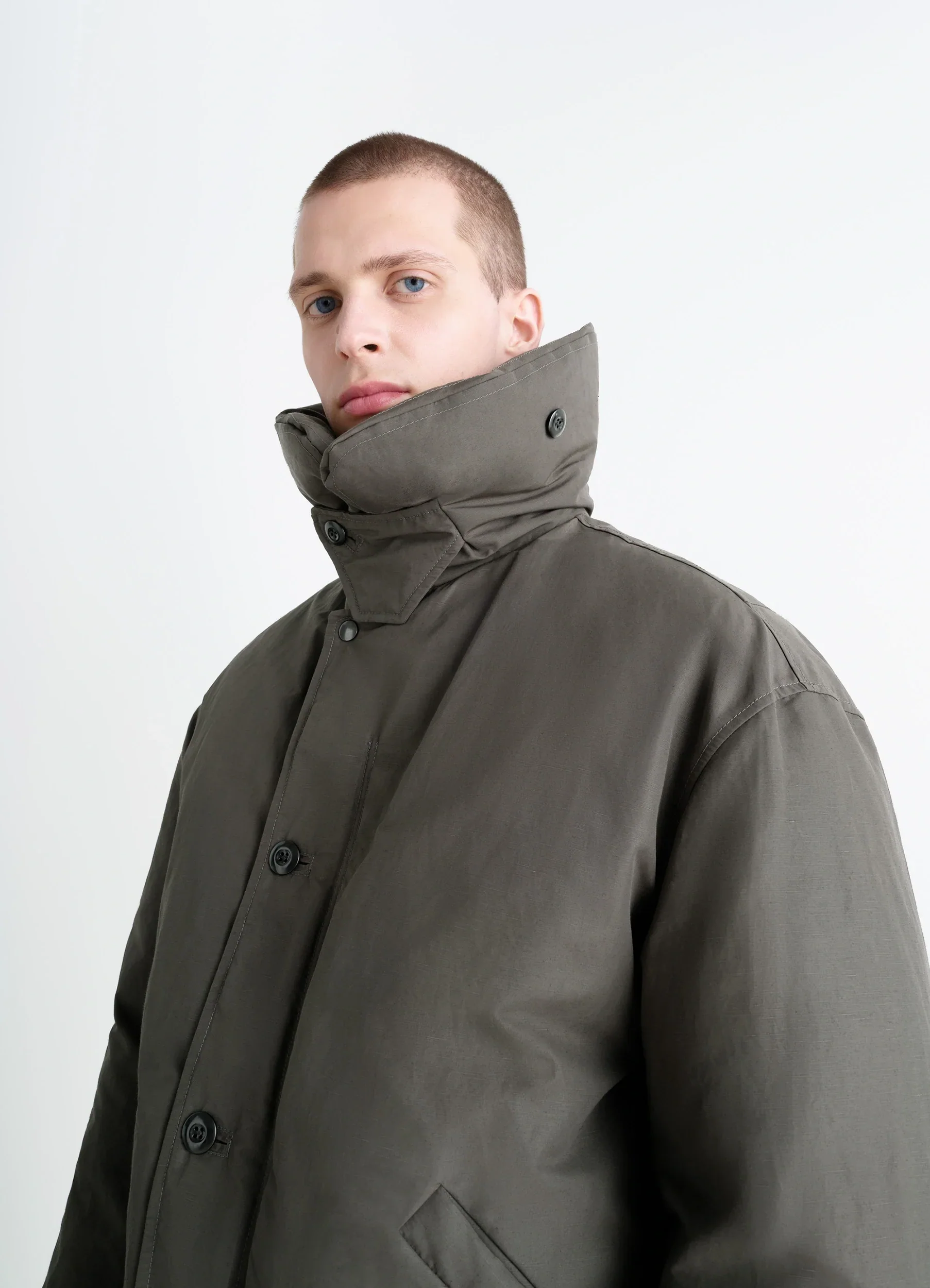 This puffer blouson is feather-filled to ensure a light, warm feel. Made from a blend of linen and cotton with a water-repellent treatment, this fabric provides technical protection against the elements.