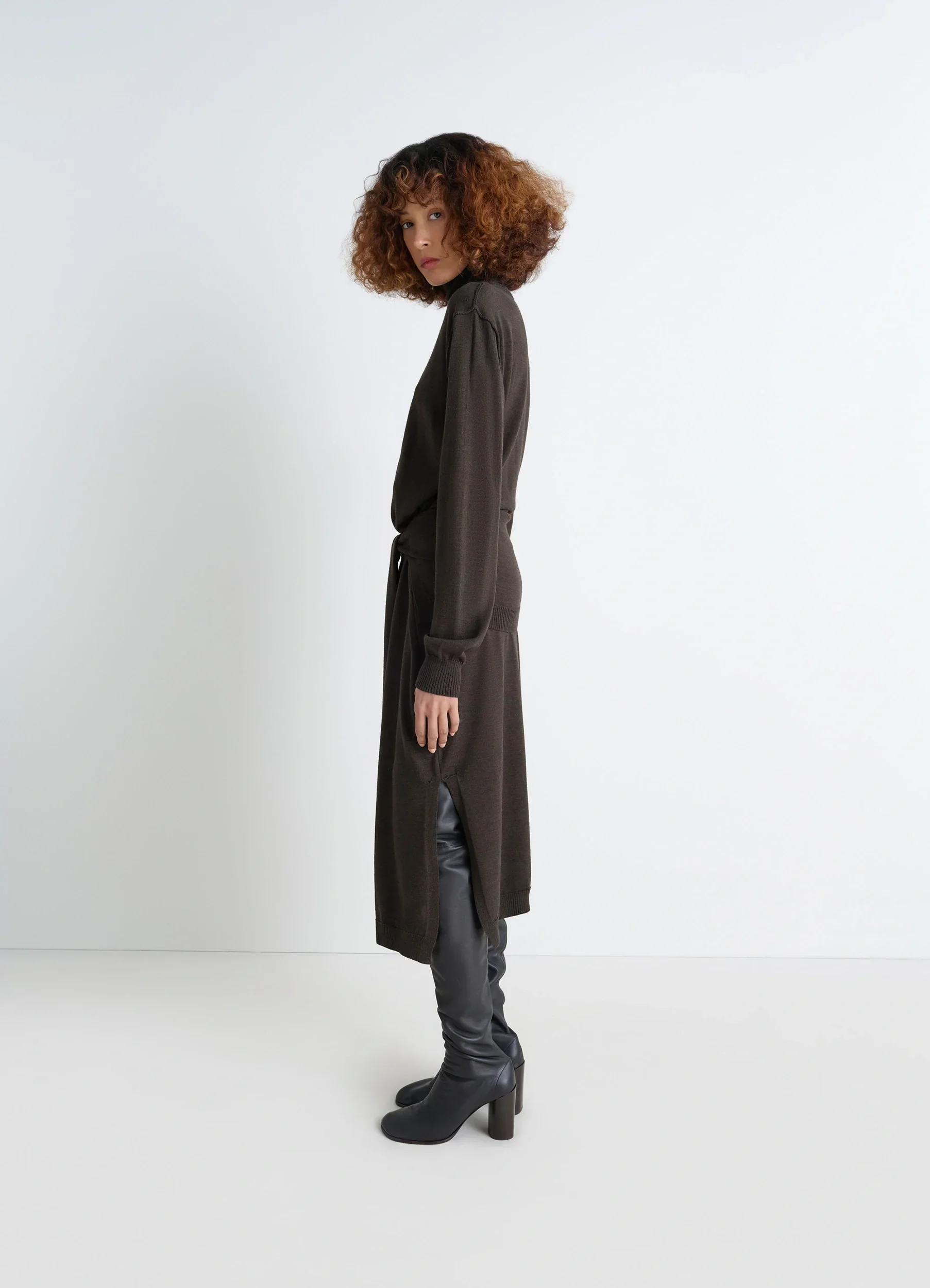 This trompe-l'œil dress is part of an evolving, modular wardrobe that reflects Lemaire's love for movement. Featuring sweater-style tie-around panels at the back, it is knitted in a blended merino wool that is both dry and soft.